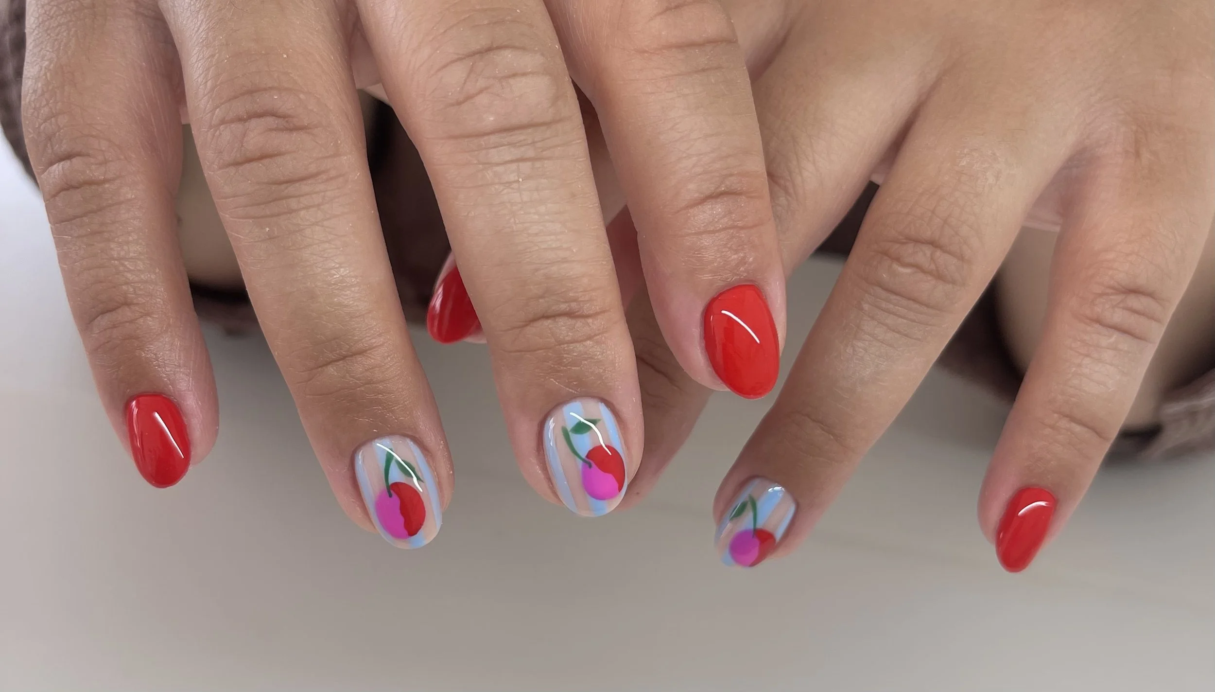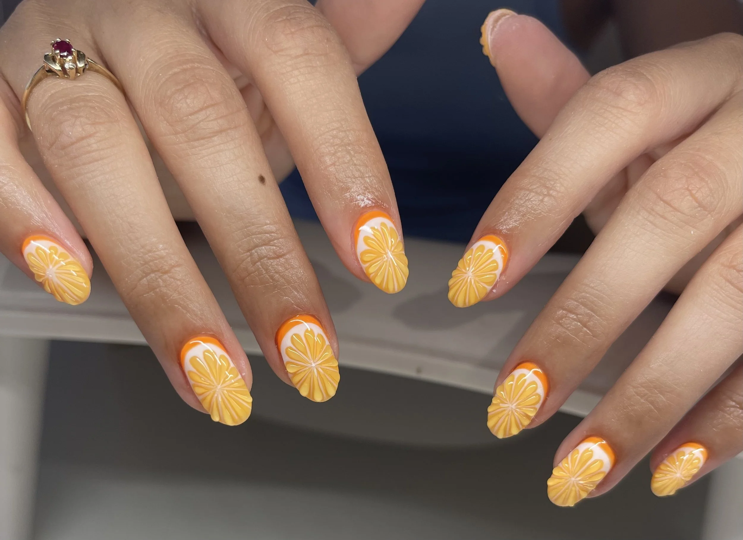 This is for Acrylic, Gel Extensions, or Gel Overlay and includes 2-3 nails with designs per hand, French tip, single color aura, ombre, or singular detail on each nail. Also includes cuticle prep!